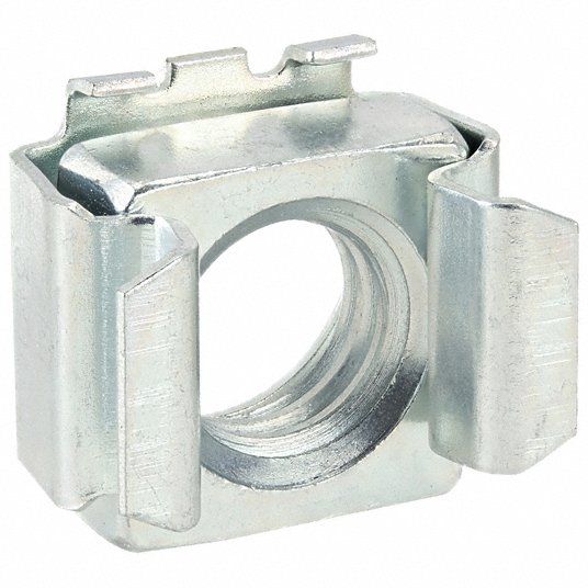 Spring Nut Nut Shape Cage Nut Nut Finish Zinc Plated Nut Material Steel Minimum Panel Thickness 0.127 in Maximum Panel Thickness 0.162 in Overall Width 0.64 in Overall Length 0.66 in Hole Center to Outside Edge 0.503 to 0.508 in System of Measurement Inch Thread Size 5/16 In.-18 Cage Finish Zinc Plated Cage Material Steel Clip-On Style Square For Use in Systems Automotive Blind Assemblies Cabinet Construction Electrical Equipment Grill Panels HVAC Server Racks