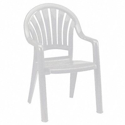 Armchair Fanback Color White Finish Glossy Construction Solid One Piece Molded Resin 300 lbs Weight Capacity Features Impervious to Salt Air Chlorine and Most Common Stains Stacks for Easy Storage Resistant To Discoloration and Fading Height 36 in Width 23-1/2 in Depth 23-1/2 in Assembly Not Required