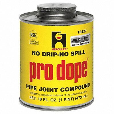 Pipe Thread Sealant Cure Type Non-Hardening Series Pro Dope Container Size 19.2 fl oz Container Type Brush-Top Can Maximum Operating Temperature 350 Degrees F Minimum Operating Temperature 0 Degrees F Maximum Operating Pressure for Gases 200 psi Maximum Operating Pressure for Liquids 250 psi Color Gray For Fluid Type Air Natural Gas Steam Water For Material Type Aluminum Black Iron Brass Copper Galvanized Steel Stainless Steel