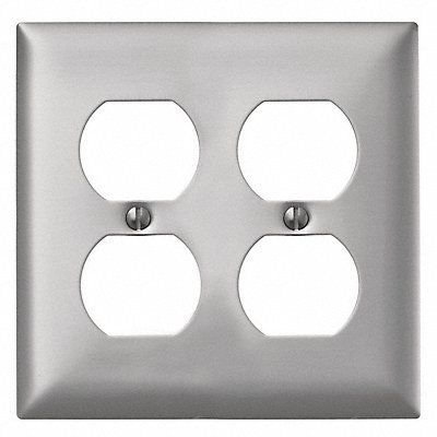 Duplex Receptacle Wall Plate Color Silver Material Aluminum Number of Gangs 2 Plate Size Standard Resistance Properties Chemical Resistant Finish Brushed Number of Outlet Openings 2 Number of Switch Openings 0 Outlet Orientation Vertical Overall Height 0.1 in Standards UL Listed Wall Plate Type Duplex Outlet Features Protective Film Helps to Prevent Scratches and Damage