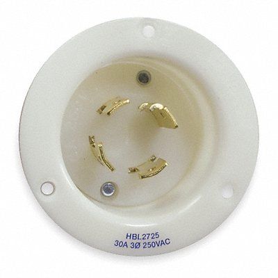 Flanged Locking Inlet Current Rating 30 A Flange Material Nylon Housing Color White IP Rating IP20 Mount Type Flush NEMA Enclosure Rating 12 4X NEMA Plug Configuration L15-30P Number of Blades 4 Number of Poles 3 Phase Three Resistance Properties Moisture Resistant Voltage Rating 250V AC Wiring Style Standard Face Diameter 2.23 in Flange Diameter 3.06 in Flange Type Flanged Grounding Grounded Horsepower Rating 3 hp Housing Material Nylon Includes Mounting Hardware Yes