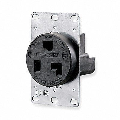 Receptacle Connection Orientation Straight Cover Type No Cover Current Rating 30 A GFCI No Grounding Grounded Housing Color Black Housing Material Reinforced Thermoplastic Polyester Mount Type Flush NEMA Enclosure Rating 1 NEMA Receptacle Configuration 5-30R Number of Gangs 1 Number of Poles 2 Number of Wires 3 Phase Single Polarized Yes Receptacle Type Single Standards CSA Certified NEMA WD-6 UL E2186 Voltage Rating 125V AC Wire Connection Type Screw Terminals