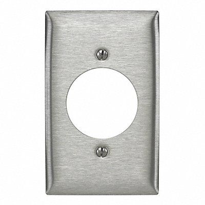 Single Receptacle Wall Plate Color Silver Material Stainless Steel Number of Gangs 1 Plate Size Standard Resistance Properties Chemical Resistant Circular Outlet Diameter 1.74 in Finish Smooth Number of Outlet Openings 1 Number of Switch Openings 0 Outlet Orientation Vertical Overall Height 0.1 in Standards UL Listed Wall Plate Type Single Circular Opening Features Protective Film Helps to Prevent Scratches and Damage