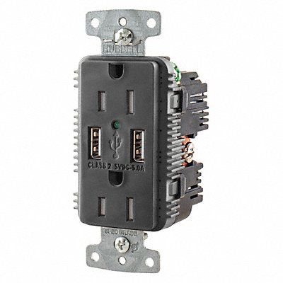 USB Charger Receptacle Current Rating 15 A Electrical Connection Type Straight Blade Housing Color Black Number of Outlets 2 Number of USB Ports 2 Number of Wires 3 Power Indicating Light Yes Receptacle Type Duplex Resistance Properties Tamper Resistant USB Connection Type A Voltage Rating 125V AC Wire Connection Type Screw Terminals Wiring Method Back Side Grounding Grounded Horsepower Rating 1/2 hp Housing Material RTP Maximum Wire Size 10 AWG Minimum Wire Size 14 AWG