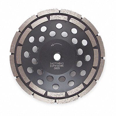 Segment Cup Grinding Wheel Double Row 7 in Abrasive Wheel Diameter Arbor Size 5/8 in or 7/8 in Abrasive Material Diamond Max RPM 8 600 RPM Number of Segments 12 Inner Row 12 Outer Row Abrasive Depth 0.2 in For Concrete Masonry and Stone