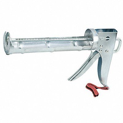 Caulk Gun Thrust Ratio 6 1 For Container Size 10 oz Barrel Materials Steel Frame Style Half Barrel Grip Style Standard Material Metal Plunger Type Ratchet Rod Product Type Caulk Gun Color Silver For Container Type Cartridge