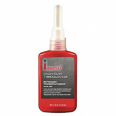 Threadlocker Threadlocking Strength High Color Red Container Size 1.2 fl oz Container Type Bottle For Maximum Thread Diameter 1 in Breakaway Torque 230 in-lb Cure Type Anaerobic Flash Point 212 Degrees F Full Cure Time 1 day Maximum Operating Temperature 300 Degrees F Minimum Operating Temperature -65 Degrees F Package Quantity 4