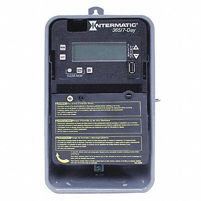 Electronic Timer Operation Mode 7/365 Days Number of Channels 1 Contact Form SPDT Voltage 120 to 277V AC Amps 30 A HP @ 120V 1 HP @ 240V 2 Events Available - Electronic Timer 96 Available Actions - Electronic Timer On/Off Event Allocation - Electronic Timer 1 On/Off Action = 2 Events Enclosure Metal Mounting Surface Number of Poles 1 Min Time Setting 1 min Max Time Setting 7 day NEMA Rating 3R Color Gray Backup Device Capacitor Backup Time 100 hr
