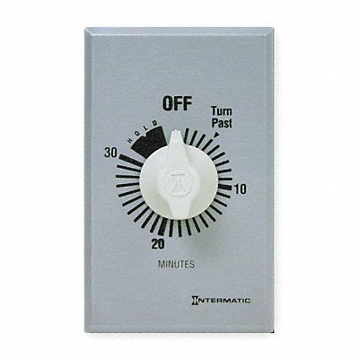 Spring-Wound Timer Timing Range 0 to 30 min Contact Form SPST HP @ 120V 1 hp HP @ 240V 2 hp Max Amps @ 125VAC 20 A Max Amps @ 250VAC 10 A Max Amps @ 277VAC 10 A Number of Gangs 1 Hold Feature Yes Faceplate Color Silver Knob Plastic Standards CSA Certified (LR3730) UL Listed (E76987)