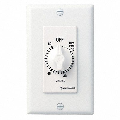 Spring-Wound Timer Timing Range 0 to 60 min Contact Form SPST HP @ 120V 1 hp HP @ 240V 2 hp Max Amps @ 125VAC 20 A Max Amps @ 250VAC 10 A Max Amps @ 277VAC 10 A Number of Gangs 1 Hold Feature No Faceplate Color White Knob Plastic Standards CSA UL