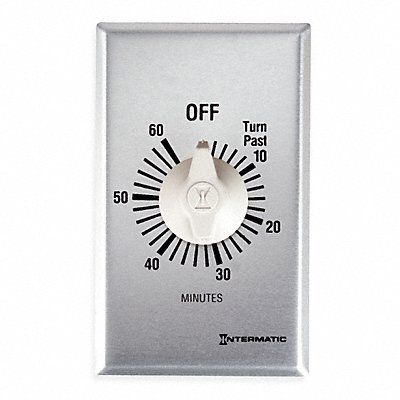 Spring-Wound Timer Timing Range 0 to 60 min Contact Form SPDT HP @ 120V 1 hp HP @ 240V 2 hp Max Amps @ 125VAC 20 A Max Amps @ 250VAC 10 A Max Amps @ 277VAC 10 A Number of Gangs 1 Hold Feature No Faceplate Color Silver Knob Plastic Standards CSA Certified (LR3730) UL Listed (E76987)