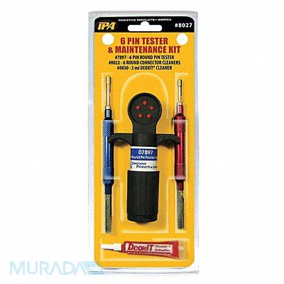 6 Round Pin Towing Maintenance Kit For Use On Truck and Trailer Connectors Voltage Range 12V DC Includes (2) 6 Round Pin Connector Cleaners 2 ml DeoxIT(R) Cleaner 6 Round Pin Tractor Trailer Circuit Tester Visual/Audible Indicators LEDs Voltage Protection No Manufacturers Warranty Length 1 yr