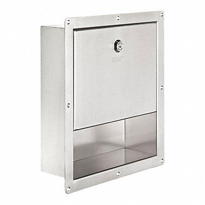 Paper Towel Dispenser Paper Towel Type Multifold Manual No Series Universal Pull Stainless Steel Ply 2 Paper Towel Width 9 3/8 in Core Dia None Silver Dispenser Mounting Recessed Dispenser Capacity (125) Multifold Dispenser Height 15 1/2 in Dispenser Width 14 in Dispenser Depth 4 3/8 in Compatible Grainger Part Number 3JG98 Compatible Mfg. Model Number 21000 Warranty 10 yr Sublease Not Required Ligature Resistant Yes Includes Batteries No ADA Compliance Yes