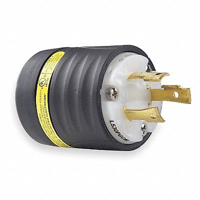 Ground Continuity Monitoring Plug Current Rating 30 A Housing Color Black White Housing Material Nylon NEMA Plug Configuration L5-30P Number of Blades 3 Number of Poles 2 Phase Single Resistance Properties Chemical Resistant Impact Resistant Voltage Rating 125V AC Wire Connection Type Screw Terminals Wiring Style Standard Face Diameter 1.358 in For Maximum Cable Diameter 0.69 in For Minimum Cable Diameter 0.385 in Grade Federal Specification Grounding Grounded