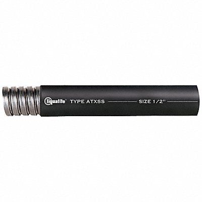 Liquid Tight Conduit Trade Size 1/2 in Bend Radius 3 in Color Black Approval Rating ARRA CE RoHS UL WEEE 316 Stainless Steel Jacket Material Thermoplastic Rubber Max Operating Temp 329 Degrees F Min Operating Temp -76 Degrees F Nominal Length 100 ft Finish Stainless Flammability Rating UL 94 HB Flexibility Flexible Indoor/Outdoor Usage Outdoor Only Inside Diameter 0.62 in 0.64 in Jacket Color Black Jacketed Yes