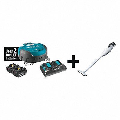 Robotic Vacuum Vacuum Power Source Cordless Cleaning Path Width 8 1/2 in 18 7/8 in Vacuum Filtration Type Standard Vacuum Collection Type Bagless Vacuum Capacity 1/16 gal 5/8 gal Vacuum Pickup Type Dry Sound Level 64dBA Number of Motor Stages 1 2 Tank Material Plastic Voltage 18 V Cordless Tool Battery Type Lithium-Ion Includes Battery Yes No Batteries Included 2 Battery Capacity 3.0Ah/1.5Ah 5.0Ah Includes Charger Yes Weight 2.7 lb 17.2 lb Width/Diameter 181/8 in