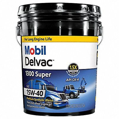 Motor Oil Series Delvac Container Size 5 gal Compatible Vehicle Type Trucks Base Formulation Synthetic Blend SAE Viscosity Grade 15W-40 Standards Ford WSS-M2C171-F1 Biodegradable Biodegradable Color Brown Compatible Engine Type Diesel Engines Container Type Pail Features Soot and Viscosity Control Extended Oil Drain Interval (ODI) Oxidation Stability Flash Point 437 Degrees F Odor Characteristic Pour Point -27.4 Degrees F