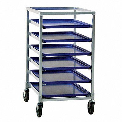 1/2 Size Bun Pan Rack End Loading Load Capacity (Lb.) 500 Construction All Welded Aluminum Open Top Temp Rating 130 Overall Length (In.) 26 Overall Width (In.) 20-3/8 Overall Height (In.) 38 Caster Type Swivel Stem Caster Material Polyolefin Wheel Tray Capacity 6 For Use With Sheet Pans