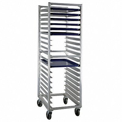 Full Size Bun Pan Rack End Loading Load Capacity (Lb.) 700 Construction All Welded Aluminum Temp Rating 180 Overall Length (In.) 26 Overall Width (In.) 20-3/8 Overall Height (In.) 69-3/4 Caster Type Swivel Platform Caster Material Polyolefin Hub Polyurethane Tread Tray Capacity 20 For Use With Sheet Pans