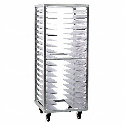 Angle Rack Roll In Stepped Load Capacity (Lb.) 700 Construction All Welded Aluminum Temp Rating 180 Overall Length (In.) 25-1/4 Overall Width (In.) 24-1/2 Overall Height (In.) 64-1/2 Caster Type Swivel Platform Caster Material Polyolefin Hub Polyurethane Tread Tray Capacity 18