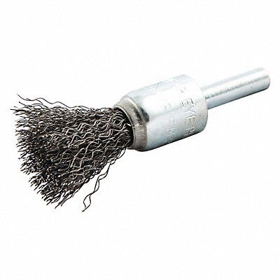 End Brush End Brush Bristle Type Crimped Wire Brush Dia 1/2 in Abrasive Shank Size 1/4 in Wire Dia 0.006 in Bristle Trim Length 1 in Abrasive Material Carbon Steel Max RPM 25 000 RPM Overall Length 2 3/4 in