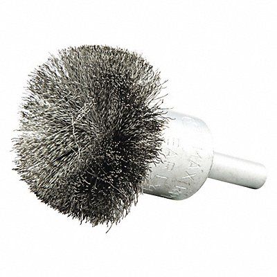 End Brush End Brush Bristle Type Crimped Wire Brush Dia 1 1/2 in Abrasive Shank Size 1/4 in Wire Dia 0.006 in Bristle Trim Length 7/8 in Abrasive Material Carbon Steel Max RPM 20 000 RPM Overall Length 3 in