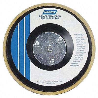 Hook-and-Loop Disc Backup Pad Abrasive Mount Type Hook and Loop Abrasive Mounting Quick Change System Not Applicable Connector Size 5/8 In.-11 Connector Type Threaded Hole Backup Pad Shape Round Device Material Rubber Density Medium Maximum Operating Speed 13 000 RPM Number of Vacuum Holes Non-Vacuum Color Black Overall Length Not Applicable Overall Width 4 in Overall Diameter 4 in Overall Thickness 1/2 in Product Type Disc Backup Pad