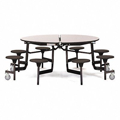 Mobile Stool Table Seats 8 Shape Round Diameter 60 in Width 81 in Depth 81 in Height 29 in Tabletop Color Family Gray Tabletop Color Gray Table Material MDF Assembled/Unassembled Assembled Seat Height 17 in Surface Material High Pressure Laminate Frame Material Steel Caster Type (4) Swivel Chair Color Black Edge Color Black Edge Type Bullnose Frame Color Black Top Thickness 3/4 in Series MTR