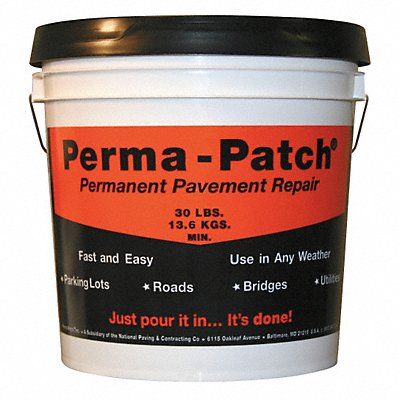 Cold Patch Product Type Cold Patch Base Material Limestone Asphalt Mix Resistance Properties Weather Resistant Product Form Solid Container Size 30 lb Container Type Pail Coverage 3 sq ft @ 1 in Full Cure Time 1 min Maximum Crack Width Not Applicable Maximum Thickness Not Applicable Minimum Thickness 1/4 in Maximum Traffic Hours Not Applicable Working Time 2 mo Application Road Repair Color Black For Use On Surface Material Asphalt Concrete Steel Wood Standards DOT Approved