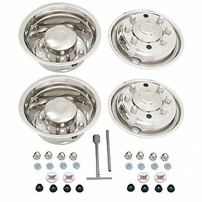 Dual Wheel Simulators Material Stainless Steel Finish Stainless Steel For Wheel Diameter 19.5 in Bolt Circle Diameter 275 mm Compatible Manufacturer Model Number Wheel # 28680 Wheel # 50180 Compatible with Make/Model/Year 1996 to 2001 Freightliner FL50/FL60 Includes Installation Tool Mounting Hardware Number of Hand Holes 4 Number of Lugs 8 Standards DOT Vehicle Wheel Style Dual