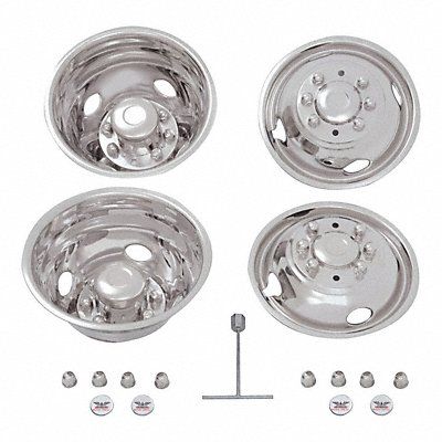 Dual Wheel Simulators DOT Mount Material Stainless Steel Finish Stainless Steel For Wheel Diameter 16 in Bolt Circle Diameter 170 mm Compatible with Make/Model/Year 2003 to 2004 Ford F350 Includes Installation Tool Mounting Hardware Number of Hand Holes 4 Number of Lugs 8 Standards DOT Vehicle Type Truck Vehicle Wheel Style Dual