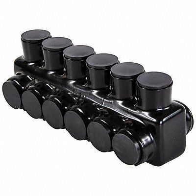 Insulated Multitap Connector Body Material Aluminum Color Black Finish Plastisol For Conductor Material Aluminum Copper For Stranded Copper Wire Size - Minimum 4 AWG For Stranded Copper Wire Size - Maximum 500 kcmil Head Style Hex Hex Size 5/16 in Insulation Material Plastisol Maximum Operating Temperature 194 Degrees F Maximum Voltage 600 V Number of Ports 6 RoHS Compliant Yes Standards cULus UL 486A Compatible with Product Type Copper and Aluminum Cables
