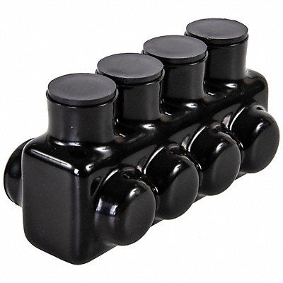 Insulated Multitap Connector Body Material Aluminum Color Black Finish Plastisol For Conductor Material Aluminum Copper For Stranded Copper Wire Size - Minimum 6 AWG For Stranded Copper Wire Size - Maximum 3/0 AWG Head Style Hex Hex Size 5/16 in Insulation Material Plastisol Maximum Operating Temperature 194 Degrees F Maximum Voltage 600 V Number of Ports 4 RoHS Compliant Yes Standards cULus UL 486B Compatible with Product Type Copper and Aluminum Cables