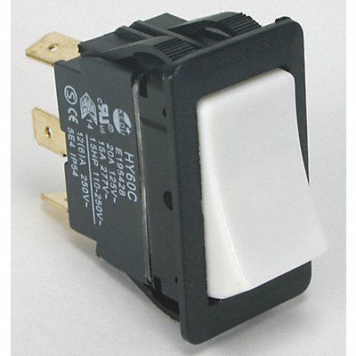 Rocker Switch Contact Form SPDT Number of Connections 3 Switch Function On/On Terminals 0.250 in Quick Connect Tab Mounting Hole 0.830 in x 1.450 in AC Contact Rating 15A @ 250V 20A @ 125V HP 1 1/2 hp Body Color Black Switch Color Ivory Operating Temp Range 32 Degrees to 104 Degrees F Standards CE CUL TUV UL
