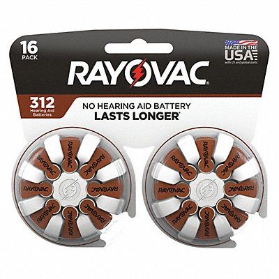 Hearing Aid Battery Battery Size 312 Battery Chemistry Zinc Air Voltage - Batteries 1.4V DC Standard Battery Pack Size 16 Capacity - Batteries 185 mAh Battery Cross-Reference 312A 312AE 312HP AC312E B3124 B347PA DA312H4 ME7Z R312ZA S312A Drain Type - Battery High Drain Diameter 0.314 in Depth 0.135 in Max Operating Temp 122 Degrees F Min Operating Temp 14 Degrees F Color Code Brown Package Quantity 16