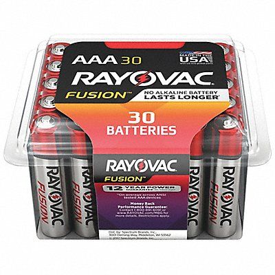 AAA Battery AAA Everyday Capacity - Batteries 1 150 mAh Standard Battery Series Fusion Battery Chemistry Alkaline Voltage - Batteries 1.5V DC Standard Battery Pack Size 30 Max Operating Temp 130 Degrees F Min Operating Temp -20 Degrees F Shelf Life 12 yr Standards ANSI -24A IEC-LR03 Diameter 0.39 in Height 4.5 in Overall Height 4.5 in Package Quantity 30