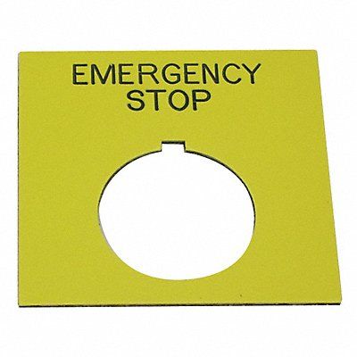 Legend Plate Square Legend Emergency Stop For Use With Rees Switches Legend/Background Color Yellow Material Plastic Height 2.4 in Width 2.44 in