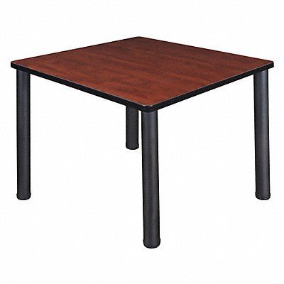 Cafe Table Surface Material Laminated Melamine Shape Square Width 42 in Depth 42 in Height 30 in Tabletop Color Family Woodgrain Tabletop Color Cherry Assembled/Unassembled Unassembled Edge Type T-Molded Edge Color Black Base Type (4) Tubular Steel Legs Leg Type Straight Top Thickness 1 in Load Rating 100 lb Series Kee Includes (4) Leveling Glides