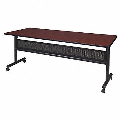 Mobile Training Table Surface Material Laminated Melamine Rectangle Width 72 in Depth 24 in Height 29 in Tabletop Color Family Woodgrain Tabletop Color Mahogany Frame Color Black Assembled/Unassembled Unassembled Frame Material Steel Edge Color Black Edge Type T-Molded Leg Type Comfort Leg Top Thickness 1 in Series Kobe Load Rating 175 lb Features Flip Top Standards ANSI/BIFMA Includes (4) Casters Perforated Steel Modesty Panel