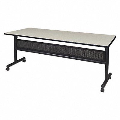 Mobile Training Table Surface Material Laminated Melamine Rectangle Width 72 in Depth 24 in Height 29 in Tabletop Color Family Woodgrain Tabletop Color Maple Frame Color Black Assembled/Unassembled Unassembled Frame Material Steel Edge Color Black Edge Type T-Molded Leg Type Comfort Leg Top Thickness 1 in Series Kobe Load Rating 175 lb Features Flip Top Standards ANSI/BIFMA Includes (4) Casters Perforated Steel Modesty Panel