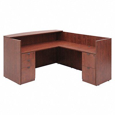 Reception Station Legacy Series Overall Width 71 in Overall Height 42 in Overall Depth 82 in Number of Pedestals 2 Configuration (1) Box/Box/File (1) File/File Color Cherry Material Commercial Grade Thermal Fused Melamine Laminate 3MM Edge Handle Metal Pull Assembly Required Standards Meets or Exceeds ANSI/BIFMA Includes Internal Cord Grommets