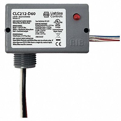 Enclosed Pre-Wired Relay Coil Voltage 277V AC Contact Form SPST-NO Current Rating 10 A Mounting Style Surface Nipple Size 0.50 in NPT Contact Rating (AC) 10 A @ 277V Input Voltage 120 to 277V AC NEMA Enclosure Rating 1 Body Depth 1.5 in Body Height 1.5 in Body Width 1.7 in Delay Time 60 min For Use With Lighting Frequency 50/60 Hz Horsepower @ 120V AC 1/2 hp Horsepower @ 240V AC 1 hp Includes Magnetic Switch Retaining Clip Lead Length 16 in Lead Size 18 AWG