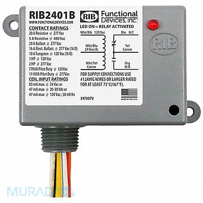 Enclosed Pre-Wired Relay Coil Voltage 24V AC Contact Form SPDT Current Rating 20 A Mounting Style Surface Nipple Size 0.50 in NPT Contact Rating (AC) 10 A @ 120V 16 A @ 277V 20 A @ 277V 5 A @ 480V Input Voltage 120V AC/DC 24V AC NEMA Enclosure Rating 1 Body Depth 1.8 in Body Height 1.8 in Body Width 3.2 in Contact Material Silver Cadmium Oxide For Use With Exhaust Fans Motors Vacuums Frequency 50/60 Hz Horsepower @ 120V AC 1 hp Lead Length 16 in