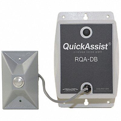 Wireless Call Button 2-Way Band Type UHF Material Aluminum Polycarbonate Channels 1 Output Watts 120 mW Width (In.) 5 in Height (In.) 2 1/4 in Length (In.) 7 1/2 in 114 Programmable Channels 154 1 External Channel Select Battery (6) AA Alkaline Batteries Operating Range Up to 1/4 Mile Includes Externally Mounted Push-Button Assembly with 36 in of Wire For Use With 41P010 423J13 4RB61 4RB62 56CY53 Grey Silver