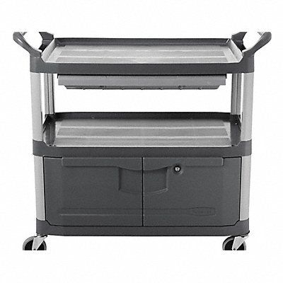 Enclosed Service Cart Load Capacity 300 lb Color Gray Overall Length 40 5/8 in Overall Width 20 in Overall Height 37 13/16 in Number of Shelves 2 Caster Type (4) Swivel Shelf Length 31 1/2 in Shelf Width 18 1/8 in Includes Lockable Bottom Door Secures Contents from Theft Sliding Top Drawer to Keep Small Items Organized