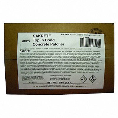 Concrete Patcher Product Type Patching Compound Patching and Repairing Properties High Strength Product Form Powder Container Size 10 lb Container Type Box Coverage 5 sq ft Full Cure Time 1 day Maximum Traffic Hours 3 day Minimum Traffic Hours 1 day Working Time 30 min Application Resurfacing Patching and General Concrete Repairs Color Gray For Use On Surface Material Concrete Standards CERCLA SARA 302 SARA 311 SARA 312 SARA 313 TSCA VOC Content 0 g/L