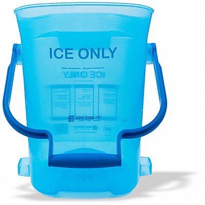 Ice Tote Capacity 25 lb Overall Height 16 in Overall Width 13 1/4 in Overall Depth 13 1/4 in Material Plastic Color Blue Features Dual Grip Design Hanging Bracket Hanging Hook Non-Nesting Design Recessed Bottom Standards NSF Certified