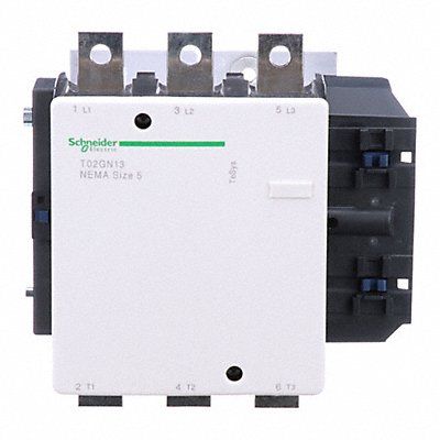 NEMA Magnetic Contactor Full Load Amps 270 A Coil Volts 120V AC NEMA Contactor Size 5 Reversing No HP @ 3 Phase - 208V 75 hp HP @ 3 Phase - 240V 100 hp HP @ 3 Phase - 480V 200 hp HP @ 3 Phase - 575V 200 hp Number of Poles 3 Enclosure NEMA Rating No Enclosure Hz 40/400 Height 8.1 in Width 8.4 in Depth 8.6 in Frame / Series / Class / Code TeSys Standards CSA UL