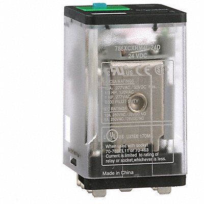 J2418 General Purpose Relay Base Shape Square Coil Voltage 24V DC Contact Form 3PDT Current Rating 10 A Electrical Connection Blade Terminal Flat Pin Width 0.189 in Number of Pins 11 Pin Shape Flat Sealing Enclosed Status Indicator LED Indicator Contact Rating (AC) 10 A @ 277V 5 A @ 250V-1 (NC) Contact Rating (DC) 10 A @ 28V Horsepower @ 120V AC 1/3 hp Horsepower @ 240V AC 1/2 hp Mounting Style Plug-In Push-To-Test Method Lockable Body Depth 2.09 in Body Height 1.4 in