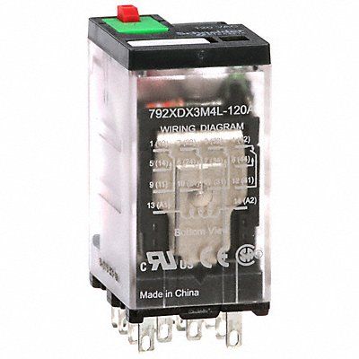 J2423 General Purpose Relay Base Shape Square Coil Voltage 120V AC Contact Form 4PDT Current Rating 3 A Electrical Connection Faston Connector Flat Pin Width 0.02 in Number of Pins 14 Status Indicator LED Indicator Mechanical Flag Contact Rating (AC) 1 A @ 250V 2 A @ 250V 3 A @ 120/240/277V Contact Rating (DC) 1 A @ 28V 2 A @ 28V 3 A @ 30V Horsepower @ 120V AC 1/16 hp Horsepower @ 240V AC 1 hp Mounting Style Plug-In Push-To-Test Method Lockable Body Depth 1.57 in